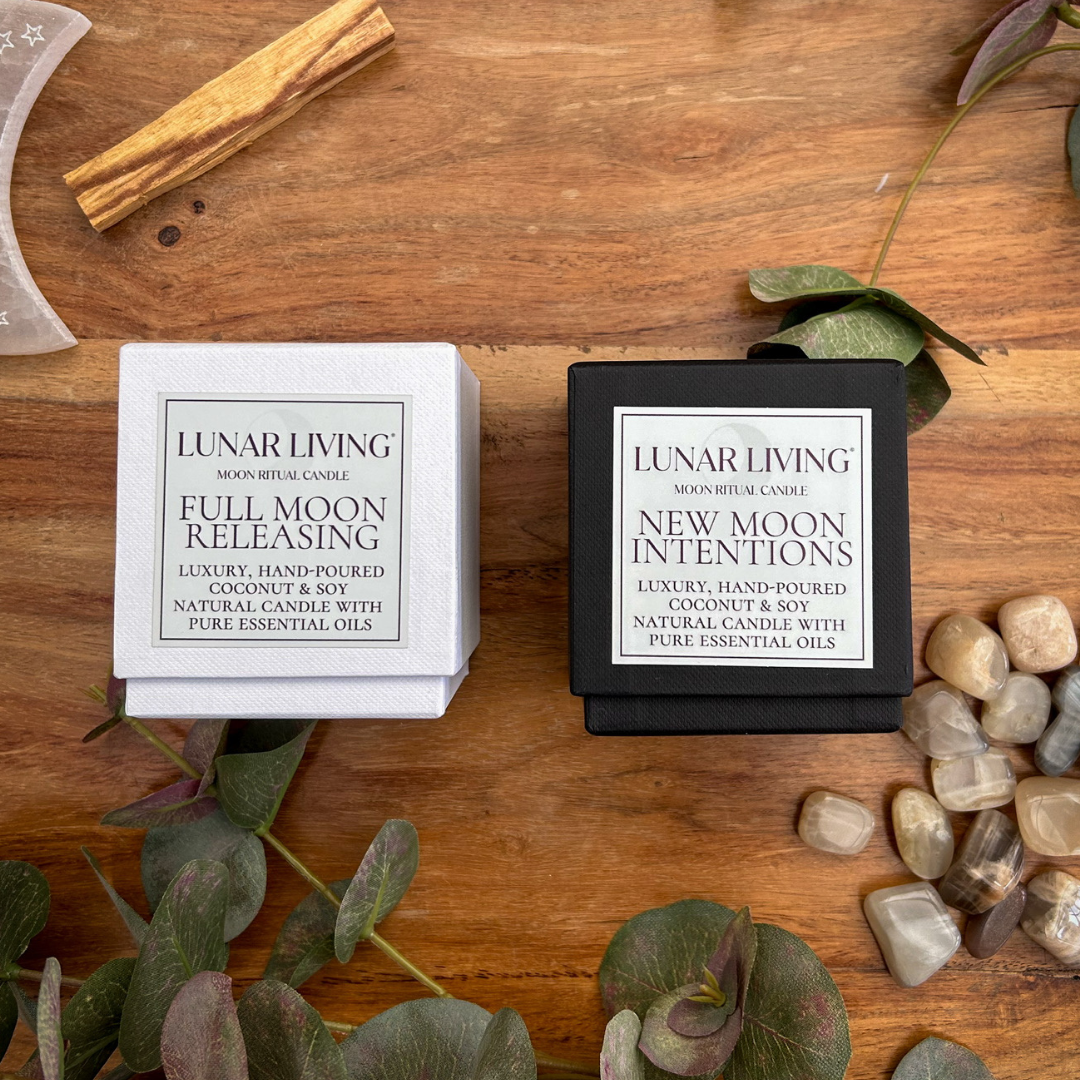 This special candle duo includes two 9cl ritual candles - one for the new moon and one for the full moon - plus a simple ‘How to Use’ guide to help you create meaningful lunar practices.