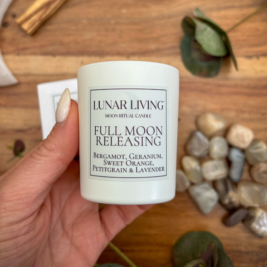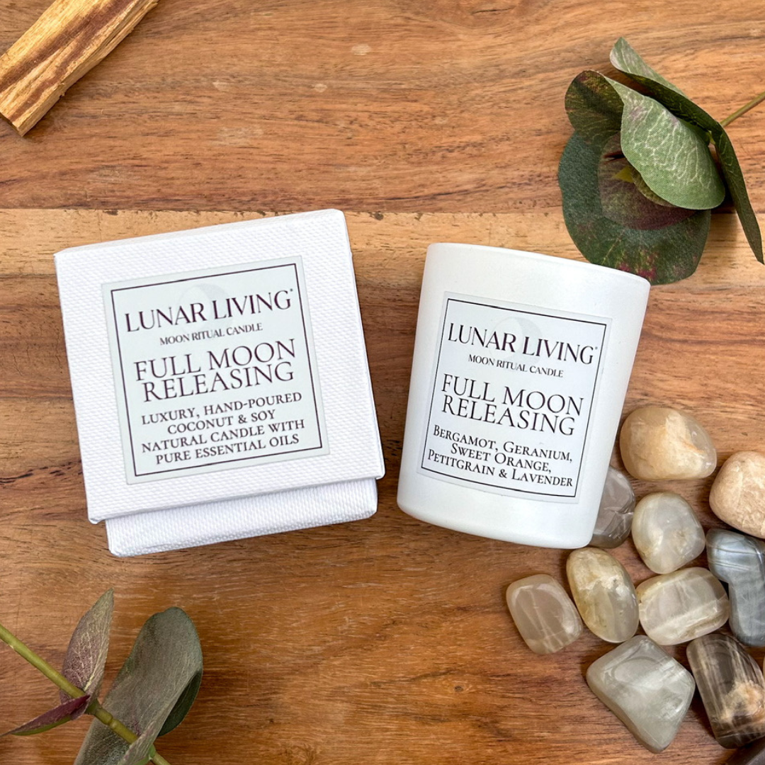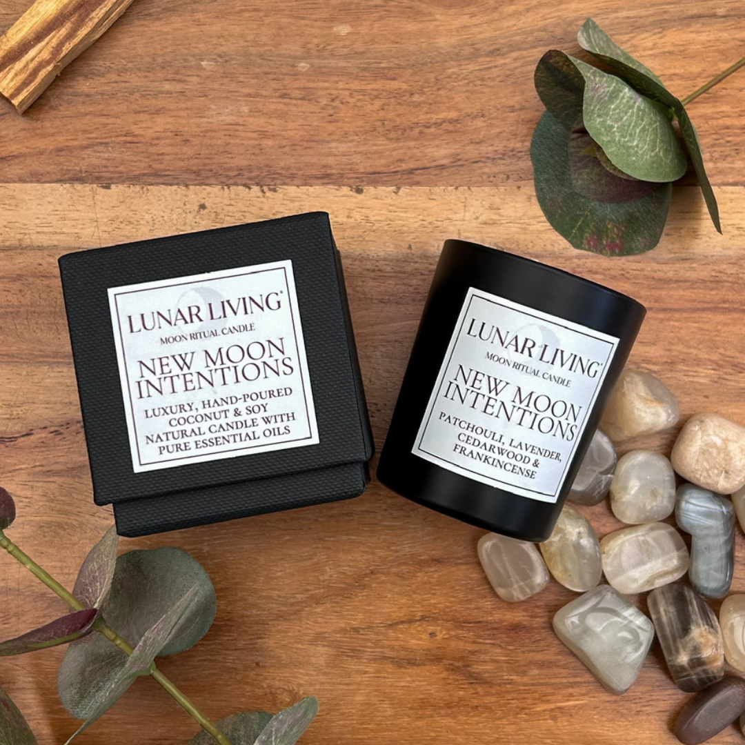 On the night of the new moon, write down what you want to create, become, or welcome in. Light your candle, speak your intentions aloud, and visualise them blooming into being. Let the flame guide your dreams home. Burn throughout the waxing moon to keep your intentions illuminated.