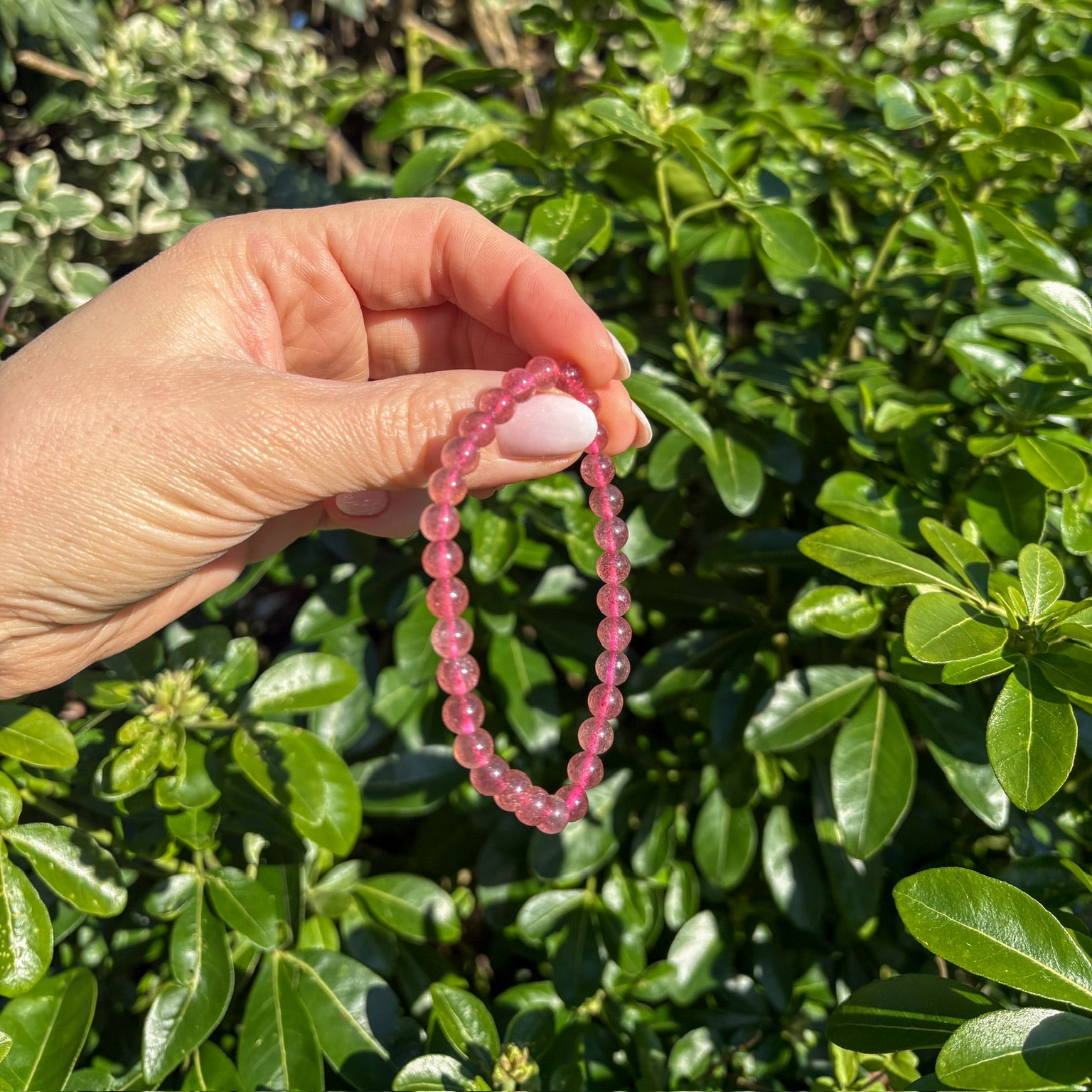 Wear your Strawberry Quartz bracelet throughout the day as a reminder to stay connected to the love within you and around you. You may wish to hold it during meditation or moments of reflection, setting an intention to welcome more joy, kindness and emotional harmony into your life.